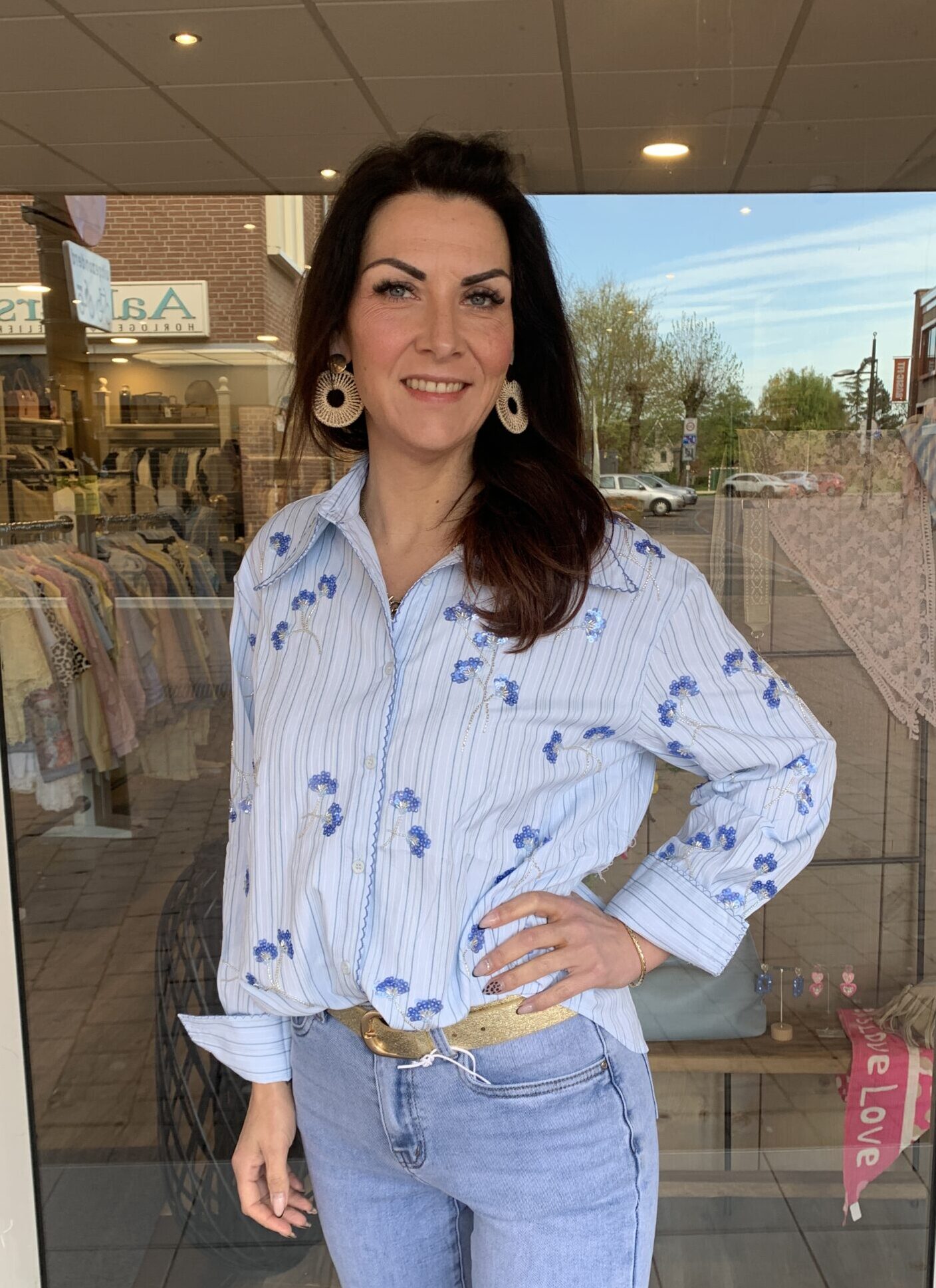 Deze blouse hebben we binnen in 2 kleuren. De blouse heeft een ruime kraag, lange mouwen en een doorknoopsluiting. Dit model heeft een subtiel streepdessin en is voorzien van kleine kraaltjes en strass. Dit model is verkrijgbaar in de maten S/M en M/L.