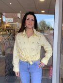 Ook deze blouse hebben we nieuw binnen. De blouse heeft een kraag, lange mouwen en een knoopsluiting. De blouse is voorzien van kleine pailletten voor een shiny effect. Verkrijgbaar in 4 verschillende kleuren.