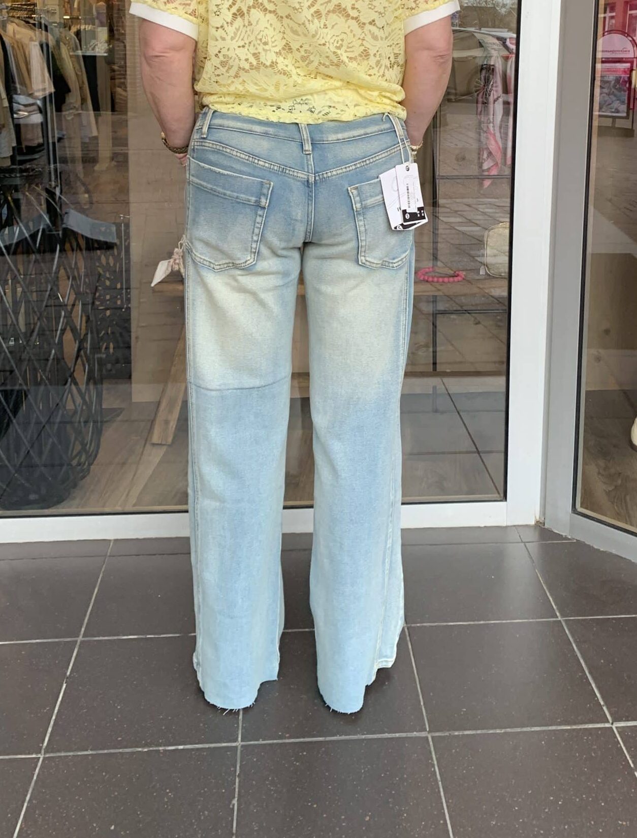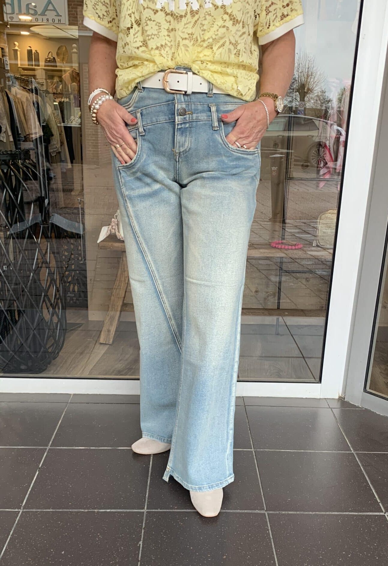 Deze 5-pocket jeans is voorzien van een dubbele asymmetrische boord en de naden geven deze broek een stoere look. Dit model is aan de achterkant iets langer. Deze is uitgevoerd in een lichte wassing. Dit model valt goed op maat en draagt dan ook heerlijk!