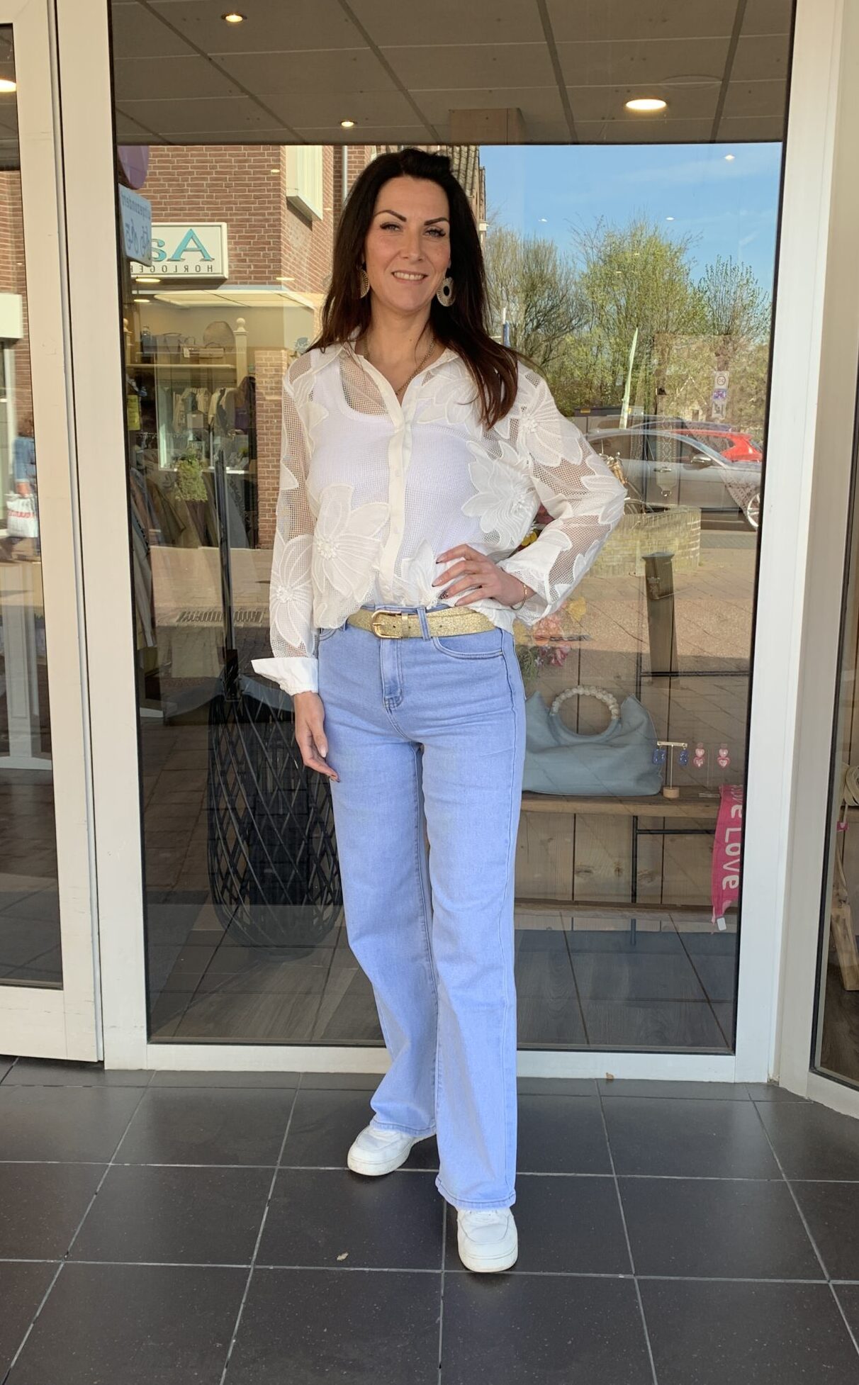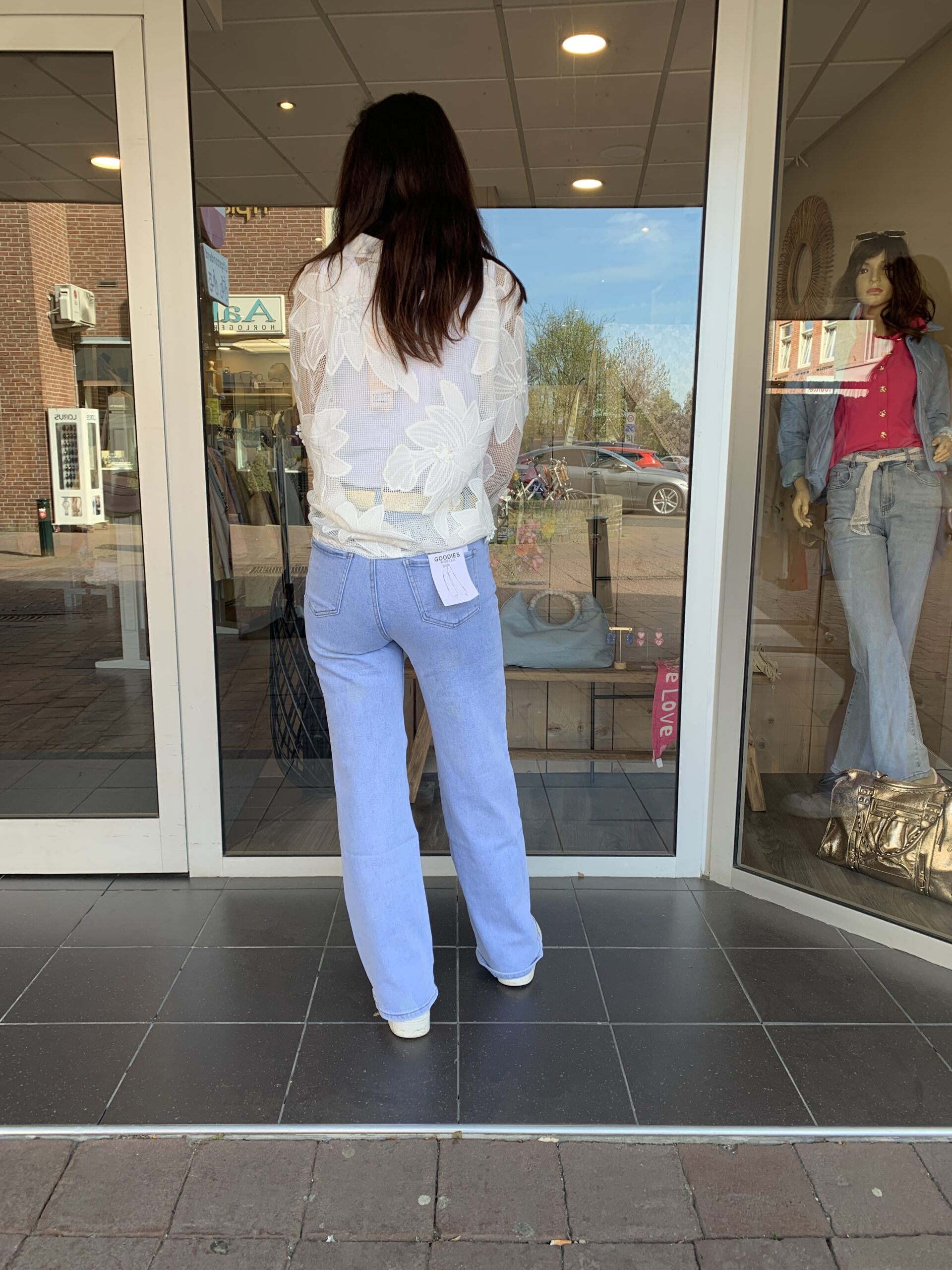 Deze 5-Pocket jeans is uitgevoerd in een mooie lichte kleur. Dit model is highwaist en is voorzien van een wide leg. Een perfecte broek om in je garderobe te hebben.